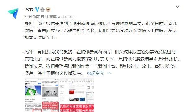 1月11日,飛書官方賬號(hào)發(fā)文表示,最近部分媒體關(guān)注到了飛書遭遇騰訊微信不合理限制的事實(shí)。錦州軟件開發(fā)截至目前,騰訊微信一直未回應(yīng)為何無理由封禁飛書,我們曾嘗試多次聯(lián)系微信人工客服,發(fā)現(xiàn)根本無法聯(lián)系上。此外,飛書也曬出了一些網(wǎng)友的反饋,在騰訊新聞APP內(nèi),相關(guān)媒體報(bào)道的分享轉(zhuǎn)發(fā)按鈕徹底消失了。在騰訊新聞內(nèi)搜索“騰訊封禁飛書”,其資訊頁搜索結(jié)果不會(huì)出現(xiàn)相關(guān)新聞報(bào)道。