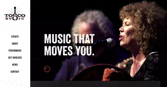 以Tosco Music 為例,他們的頁面設(shè)計(jì)就給訪客的第一印象就相當(dāng)不錯(cuò),網(wǎng)站中包含了一系列有趣的視覺設(shè)計(jì):