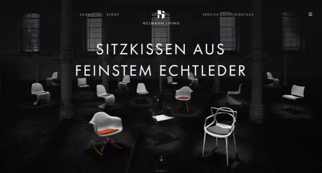Hillman Living 的首頁采用了一張看起來略顯荒涼單調(diào)的圖片來營造冷峻的氛圍,同時(shí)用顯眼的暖色調(diào)來點(diǎn)綴,與整體的氛圍構(gòu)成對(duì)比,緊緊抓住用戶的注意力,讓用戶注意到圖中獨(dú)特的椅子。